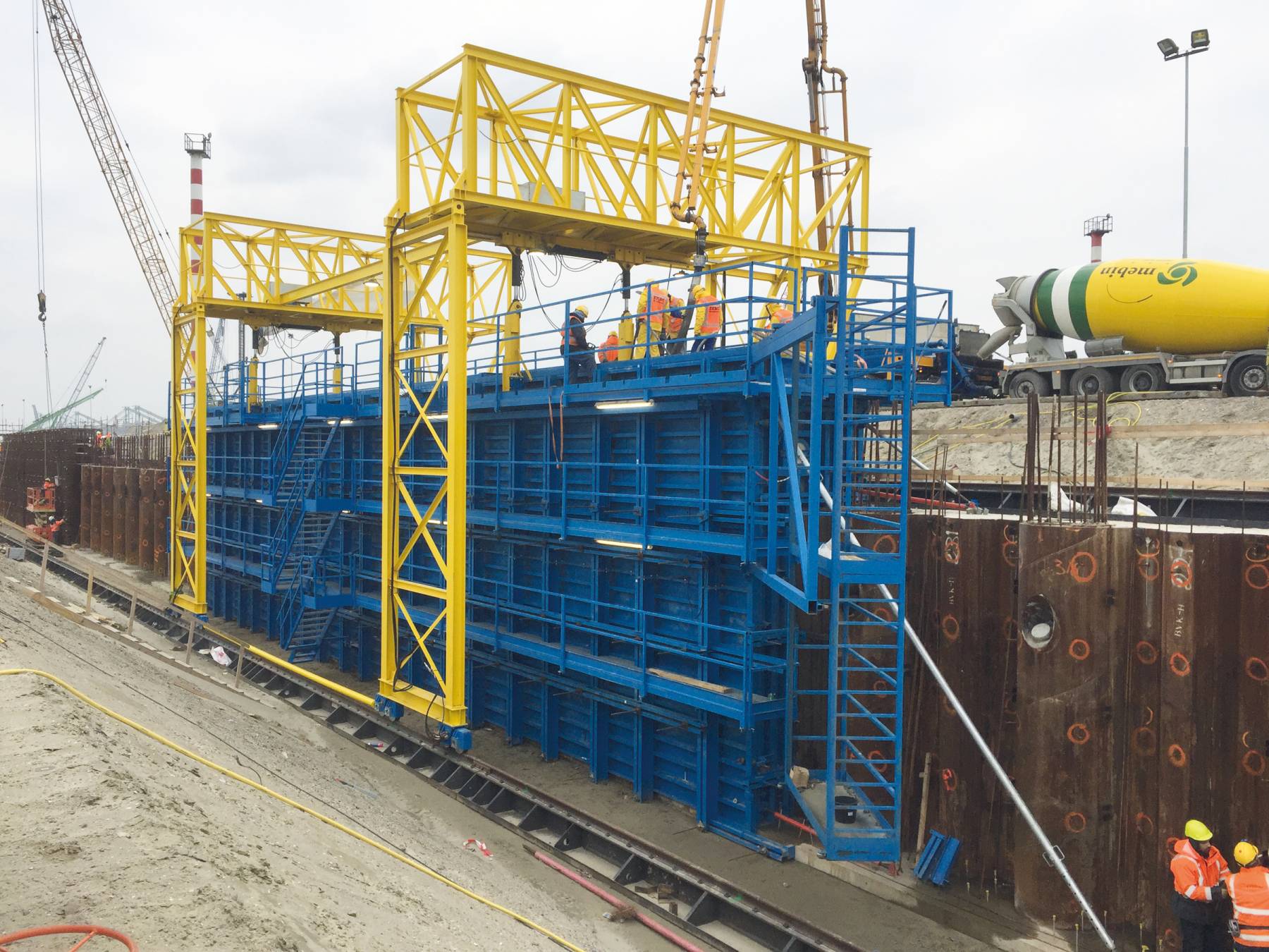 Construx lieferte 3 komplette Sätze von Schalungen, um im Hafen von Rotterdam 2,3 km Kaimauern zu betonieren.