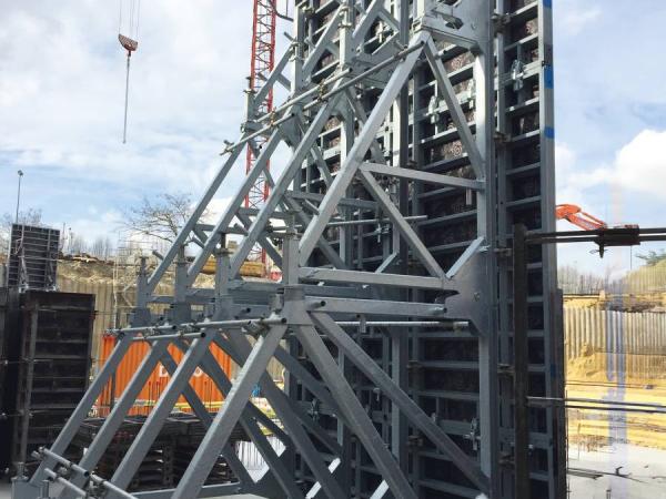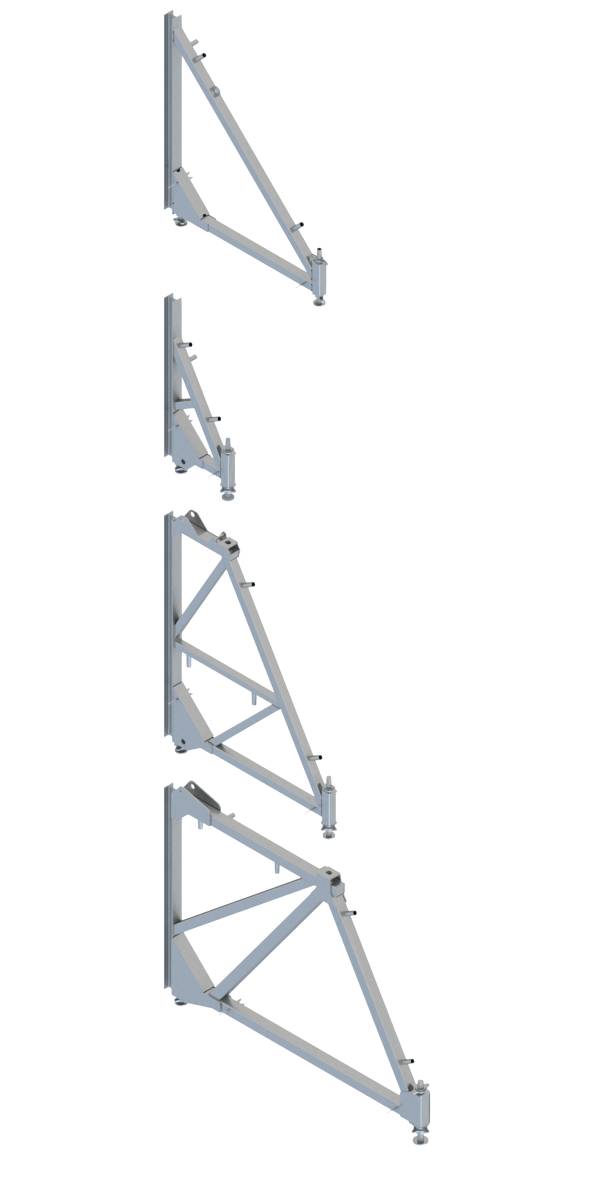 Sie leiten den Betondruck von der Wand durch die Verankerung an den Unterbau ab. Abhängig von der Betonierhöhe gibt es 4 verschiedene Stützbocktypen.