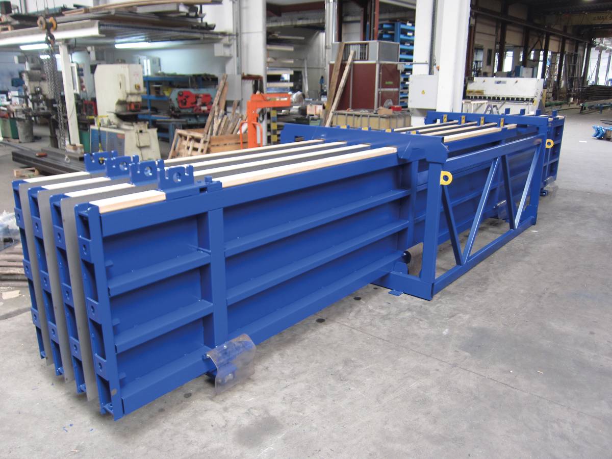 These battery moulds are composed of manually movable steel panels with an 18mm multiplex o ra 5mm stainless steel sheeting.