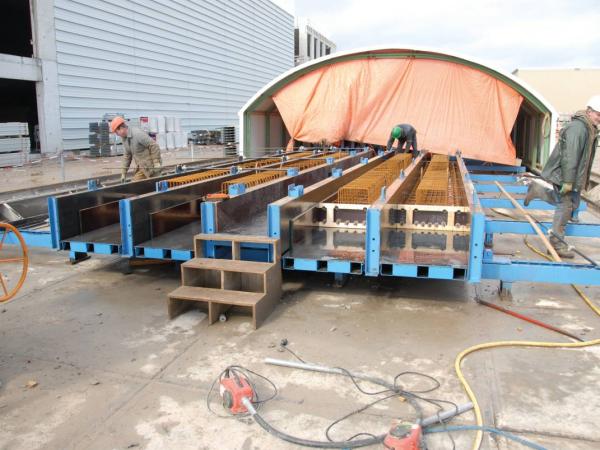 To manufacture beams and columns on-site, a Multibat can be used as in a precast factory.