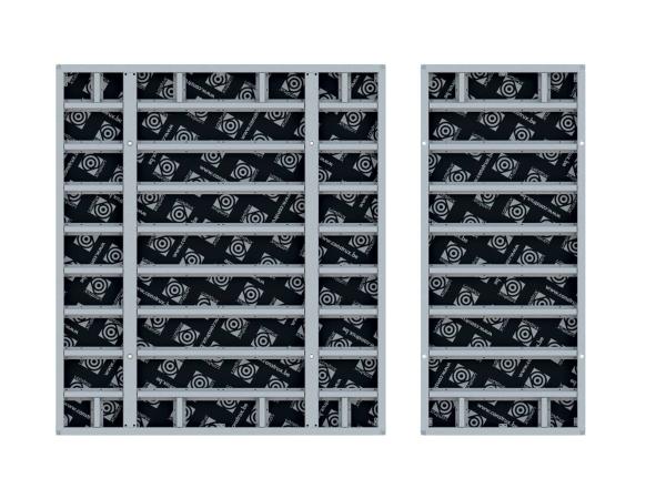 - Panneaux universels: 1 panneau universel de 720mm de largeur par hauteur, équipé de trous de fixation supplémentaires tous les 30mm, à utiliser pour la réalisation d’angles, de raccordements à un mur existant comme panneaux d’abouts, ainsi que lors de l’exécution de colonnes